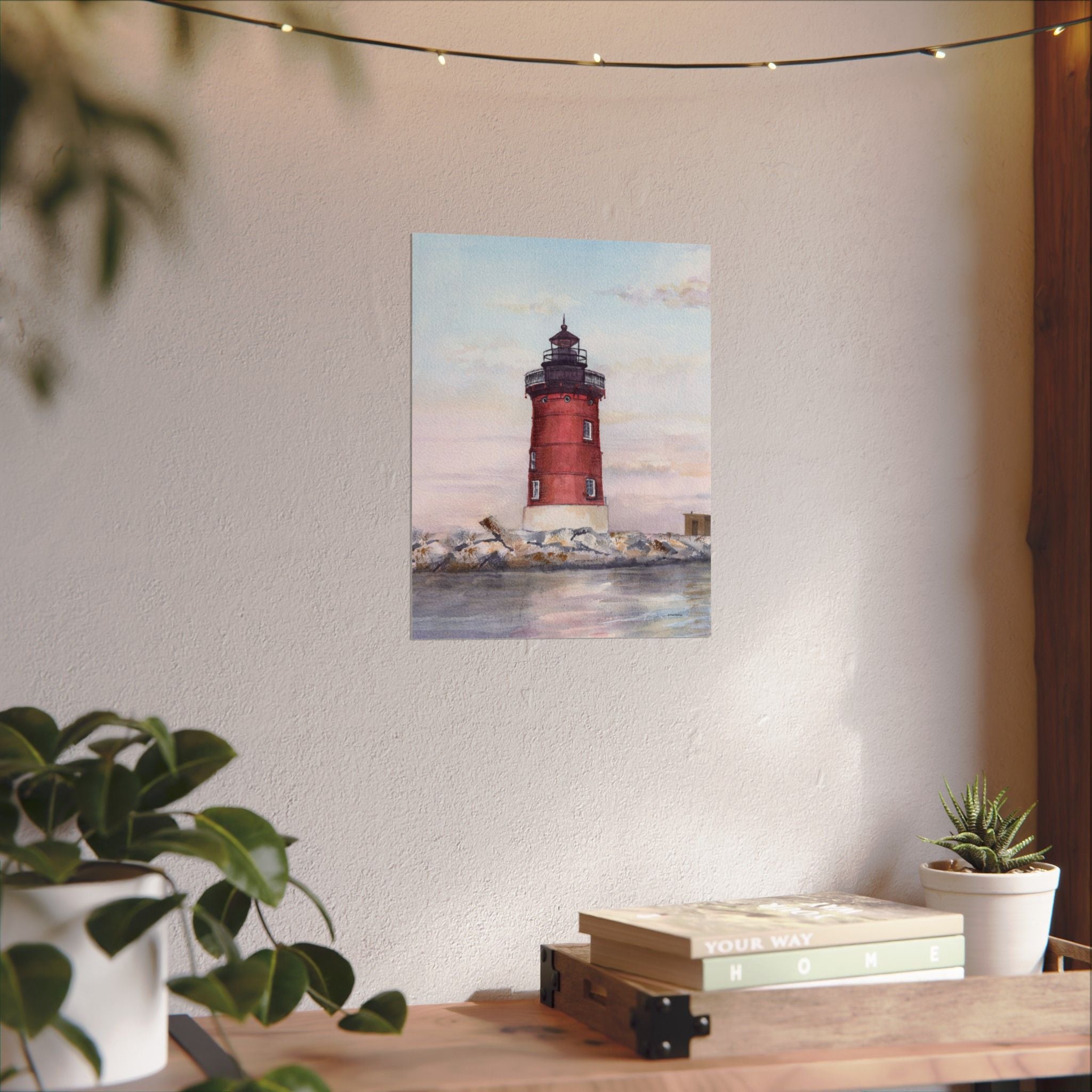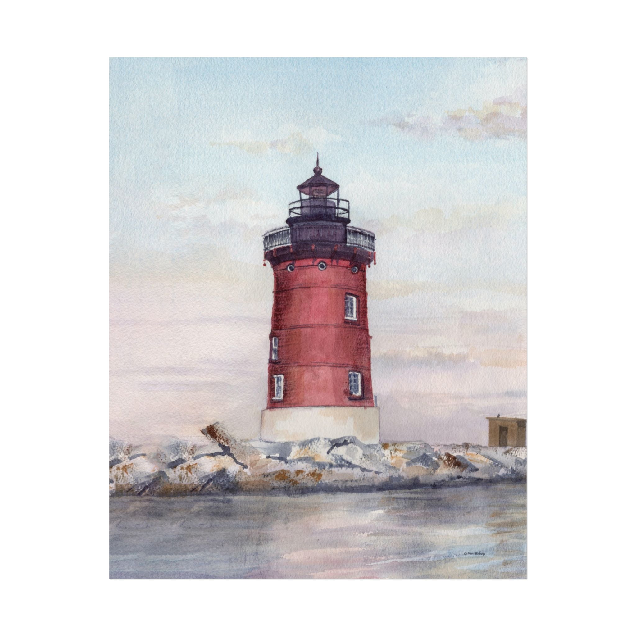 Elevate your home decor with these textured watercolor matte prints featuring a stunning watercolor print of the Lewes, Delaware East End Lighthouse. Created by Patti Bishop, these poster prints come in a size range from 8x10 to 18x24, adding a touch of coastal charm to any room. Perfect for art enthusiasts, coastal decor lovers, and those looking to add a pop of color to their space. Ideal for beach house decor, coastal-themed rooms, and as a gift for lighthouse enthusiasts or those who appreciate watercolor art. Great for decorating beach-themed, coastal cottages, or as a reminder of a visit to Delaware's iconic beaches.