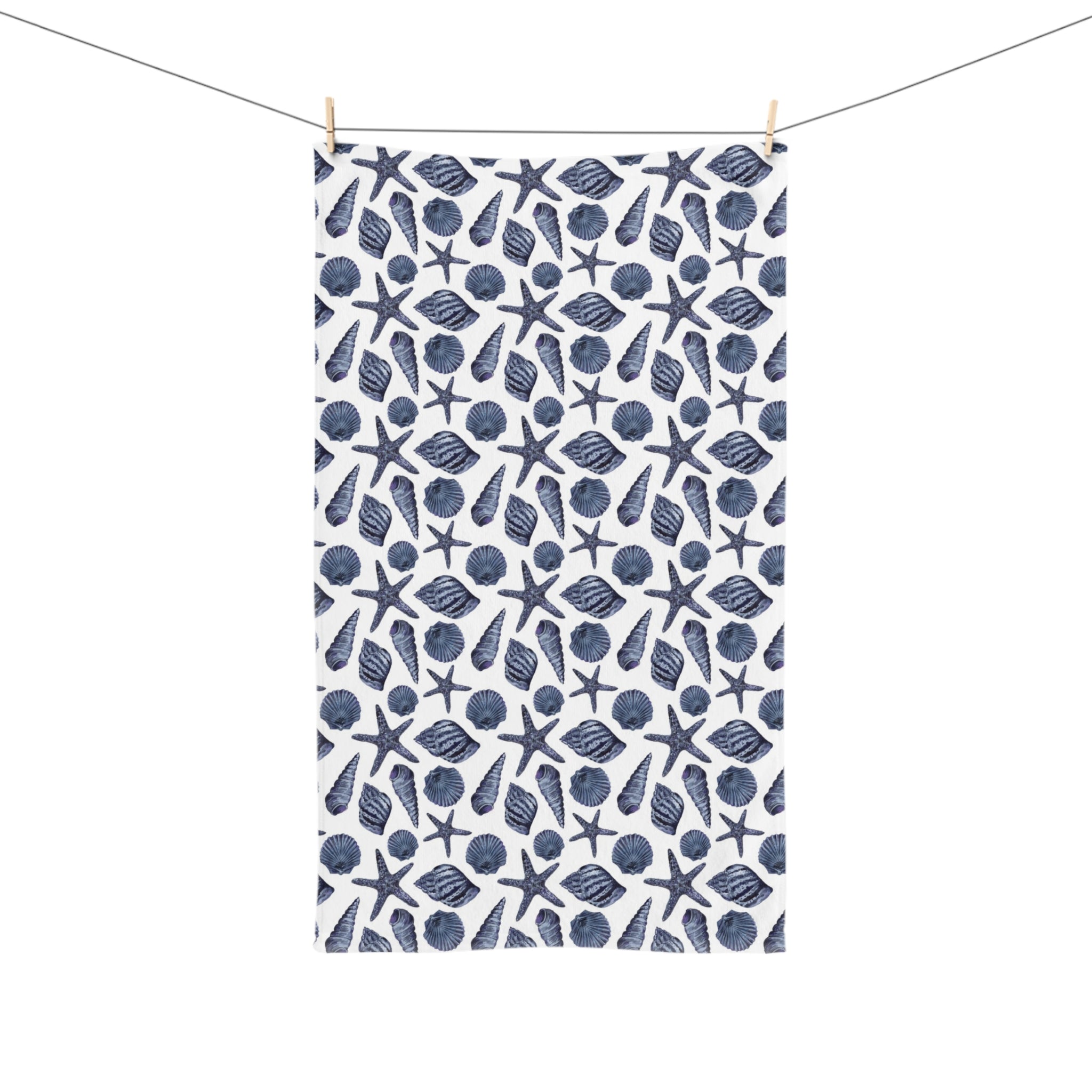 Salted breeze, sun-warmed sand, and the quiet rhythm of tide pools — this hand towel brings a slice of the coast to your everyday routine. The blue nautical shell print feels like a scrap of a seaside postcard: crisp waves of indigo and soft aquamarine shells that catch the eye without shouting. Lightweight and plush to the touch, it slips naturally into a coastal kitchen, a bright summer hostess setup, or a small bathroom where beach house charm is the language. Whether draped over a rail during a casual gathering or folded by the sink after long days outdoors, it adds a calm, curated note to moments that celebrate sea-salty afternoons and relaxed entertaining.