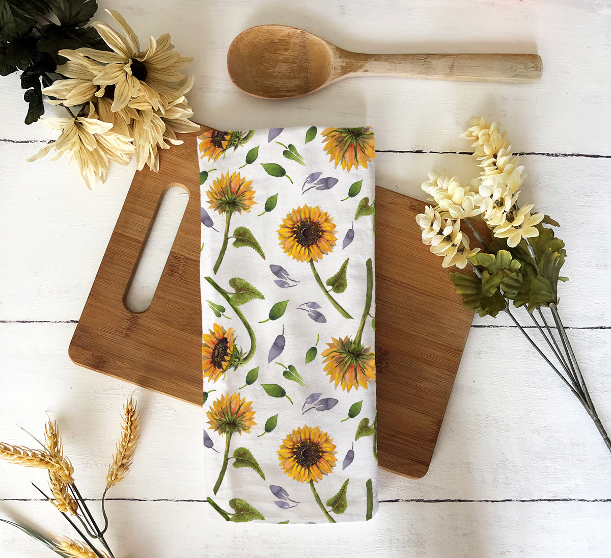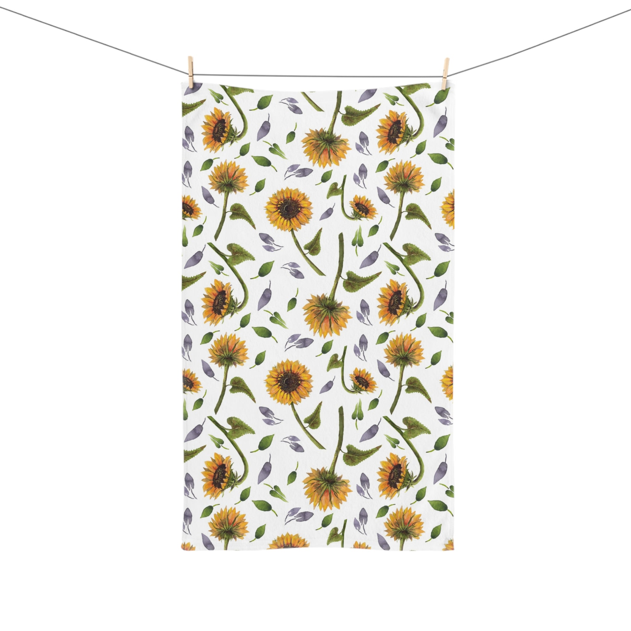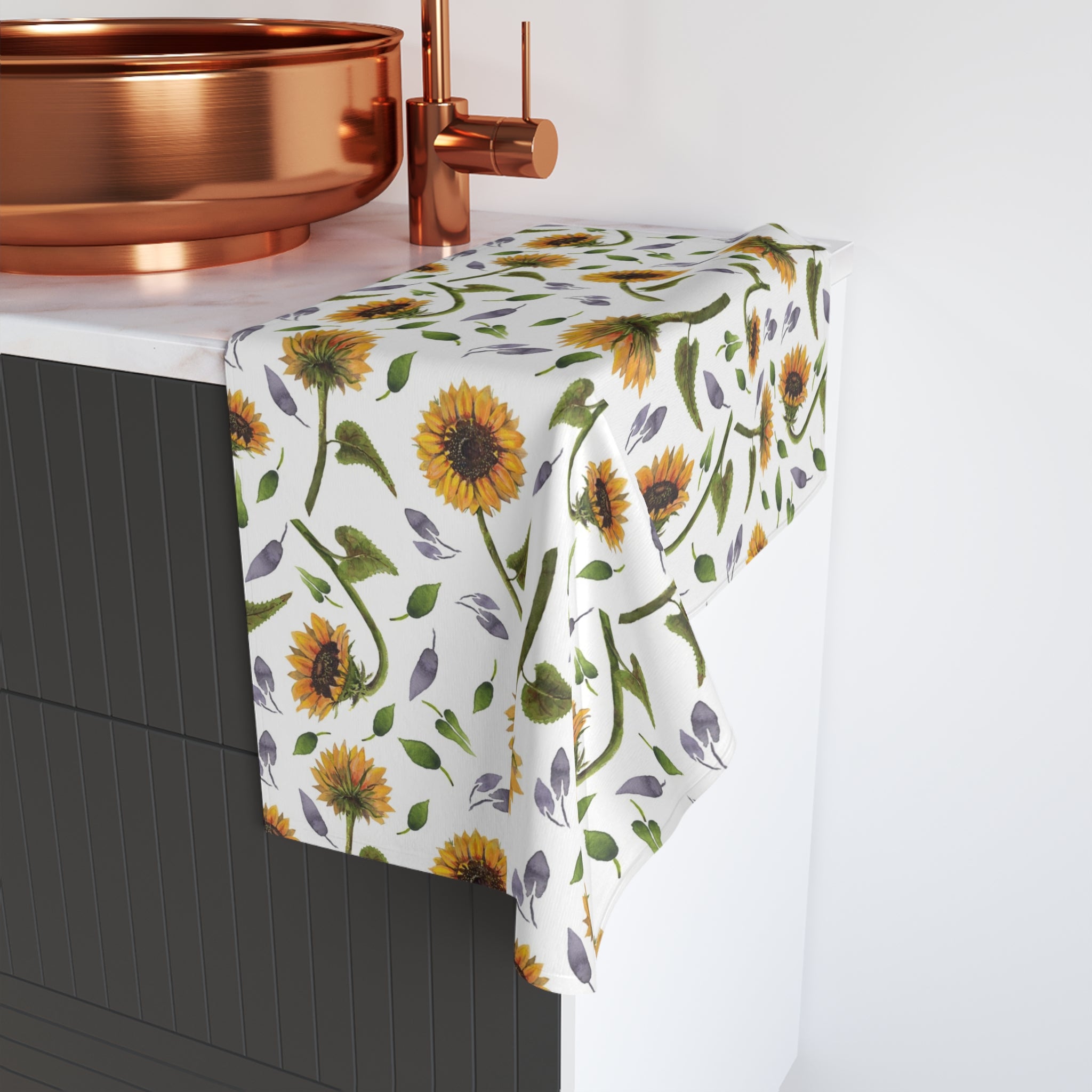 Bring a warm, sunlit corner into the kitchen with this sunflower hand towel. Gentle and lightweight against your hands, it carries a burst of bright, crisp floral color that feels like a summer morning among the garden beds. Gardeners and plant lovers will recognize the small comforts: quick-drying fabric after a muddy wash-up, lively print that perks up a sinkside, and a soft hand that makes ordinary chores feel a little kinder. Lay it over a hook, tuck it beside a potted herb, or drape it on a counter to add cheerful, nature-inspired charm to everyday moments — especially during summer gatherings or when welcoming friends into a cozy, plant-filled home.